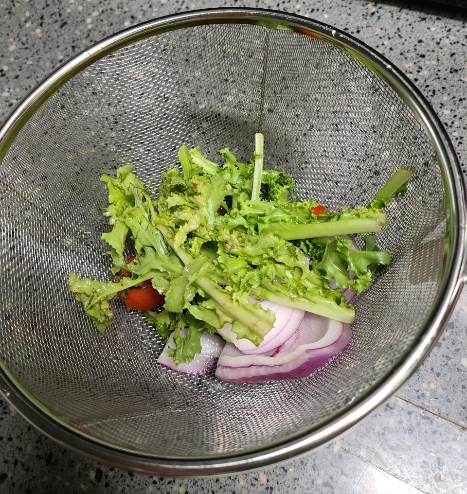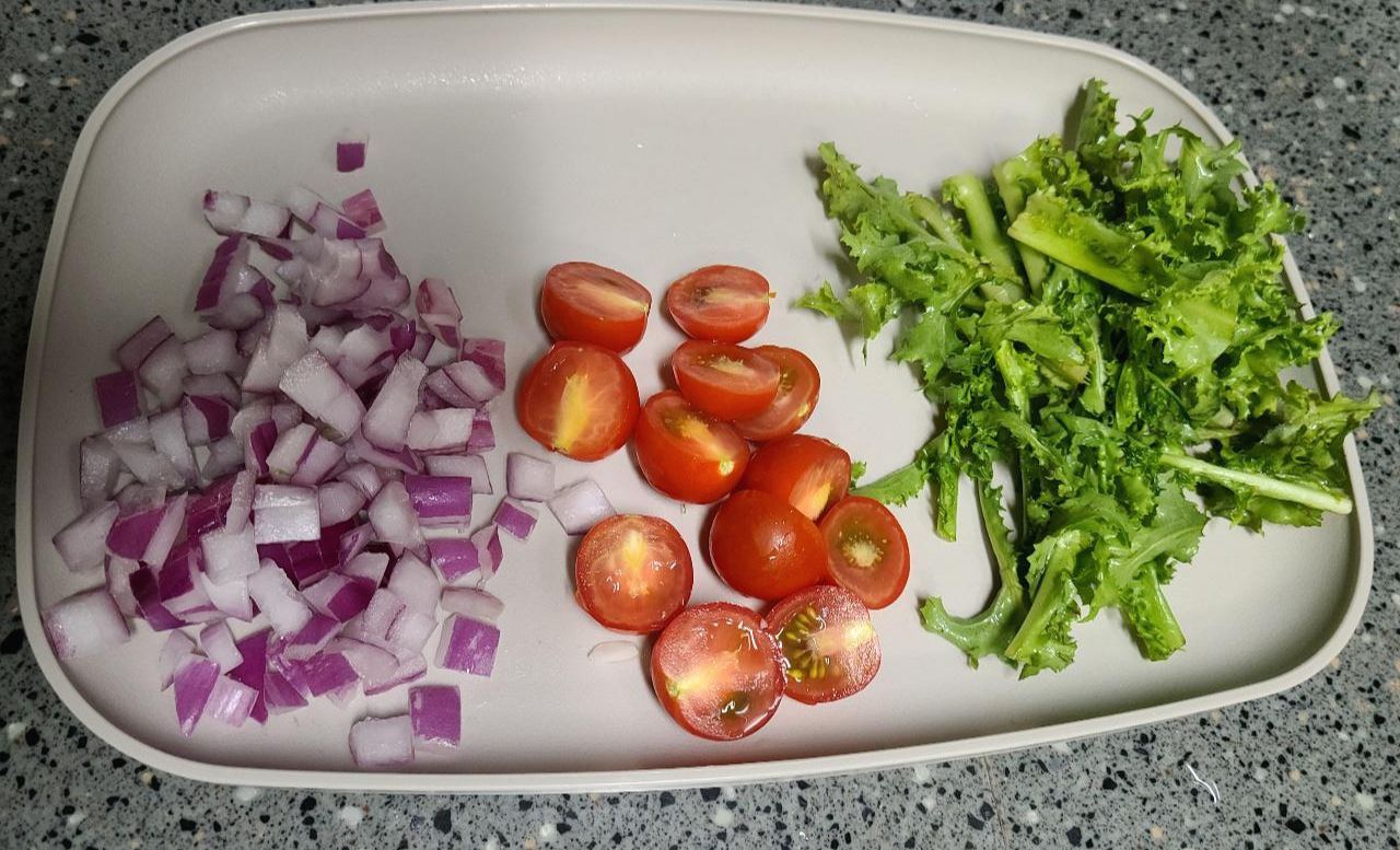 설명서에는 야채를 어떻게 썰어라고 적혀있지 않아서 아쉬웠어요. 토마토는 반으로 썰라고 적혀있지만 양파는 다지라고 안 적혀 있더라고요...